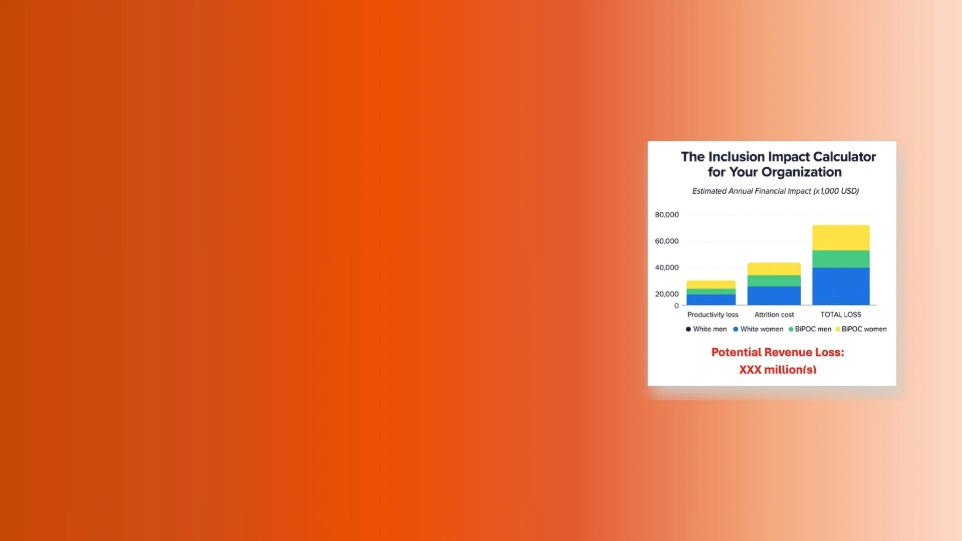The Calculator is interactive: use the controls to change any of the parameters and see an estimate of how much money your organization is losing—or how much it could save by being more inclusive.